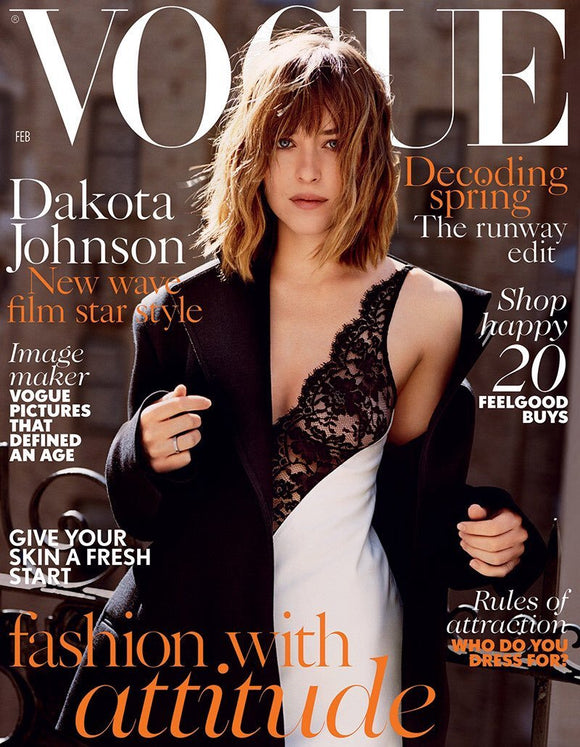 UK Vogue February 2016 - Good Condition Dakota Johnson Cover and wonderful rare photo shoot and interview on Fifty Shades, co star Jamie Dornan and more.