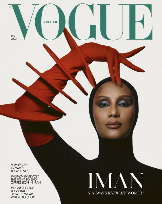 Vogue UK Magazine - Jan 2023 Iman Cover and large interview with portraits. Final copies do have some scratchs to the cover.
