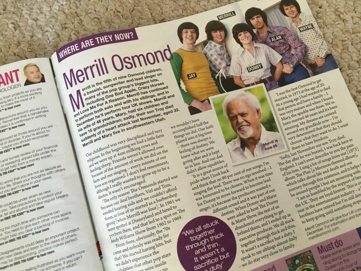 Saturday Magazine - September 14 2019 Excellent Condition Criminal Lovely feature with photos of the stars including David Tennant and Lee Ingelby. Merrill Osmond in depth interview with portrait...