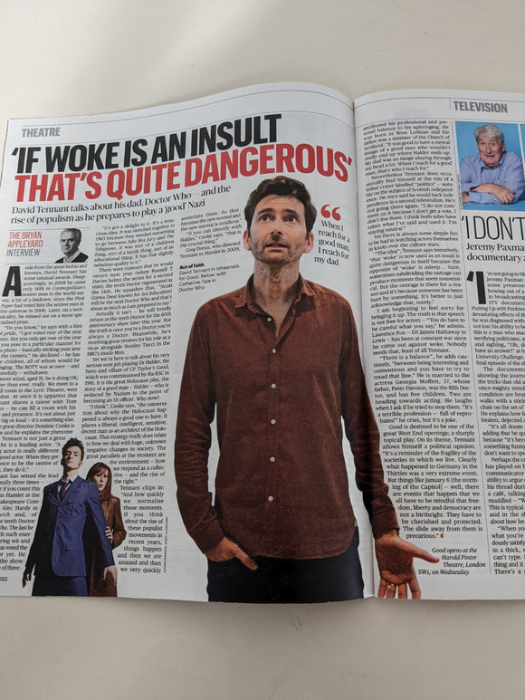 SATURDAY Magazine 10/12/2022 - Brand New Condition David Tennant Cover and in depth interview with photos.