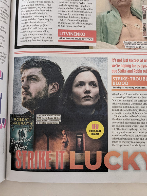 SUN TV Magazine 10 Dec 2022 - Brand New Condition Blacklist Nice article with portrait on James Spader. Tom Burke Interview with photo on the return of Strike. David Tennant...