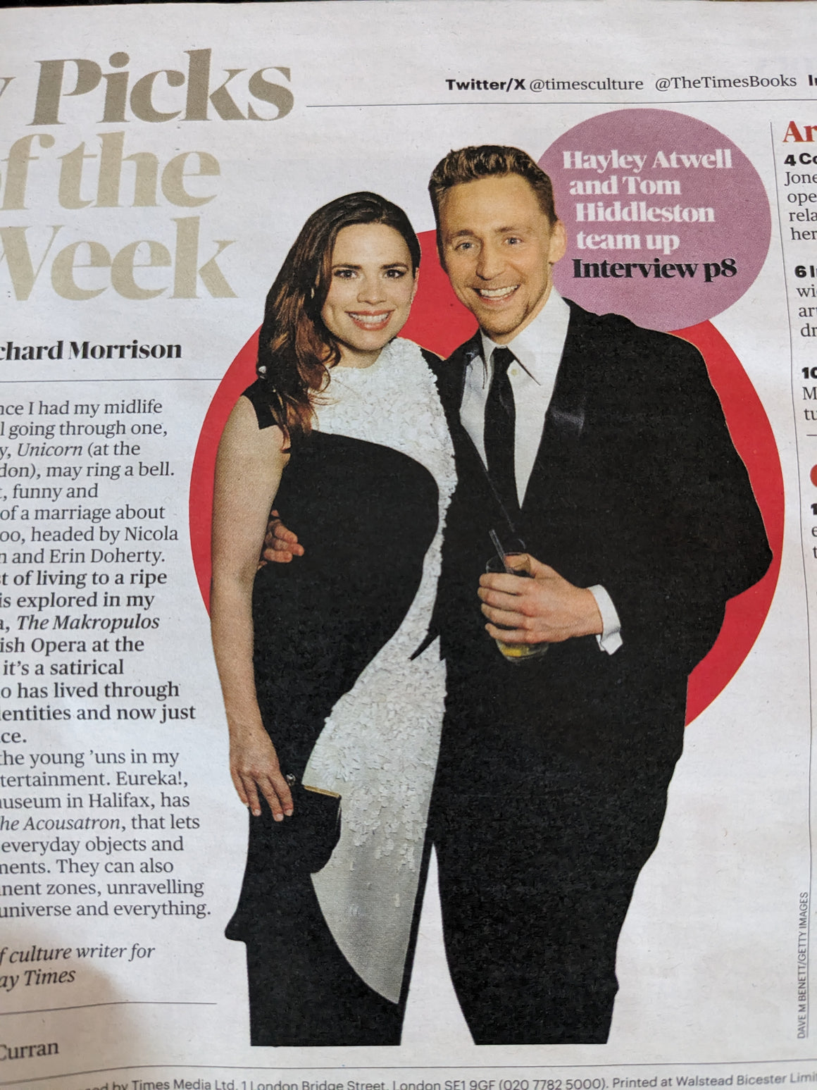 Culture Magazine 02-February-2025 - Brand New Condition TOM HIDDLESTON & Hayley Atwell: In depth interview with portraits on their new play. PLUS Rami Malek theatre review with portrait.