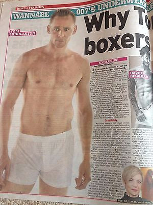 Brand New Sunday People UK Newspaper June 26 2016 Features: Tom Hiddleston Exclusive cover story and special with stunning portraits in his boxers.