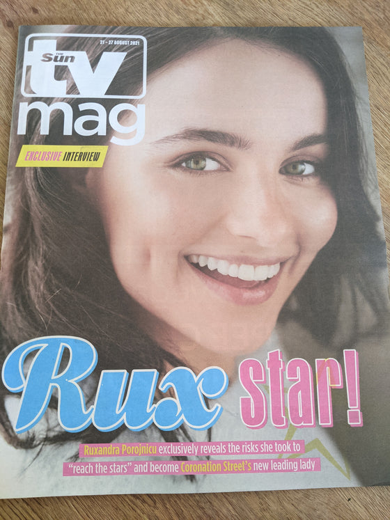 SUN TV Magazine 21 AUGUST 2021 - Brand New Condition RUXANDRA POROJNICU Cover and in depth interview with portrait on Corrie. Inside No 9 Lovely portrait of Reece Shearsmith and...