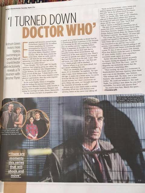 BRITISH WEEKEND MAGAZINE 24 DECEMBER 2016 FEATURES James Norton & Robson Green Cover and large interview with portraits on Grantchester. David Suchet In depth interview with portrait on Peter Pan....