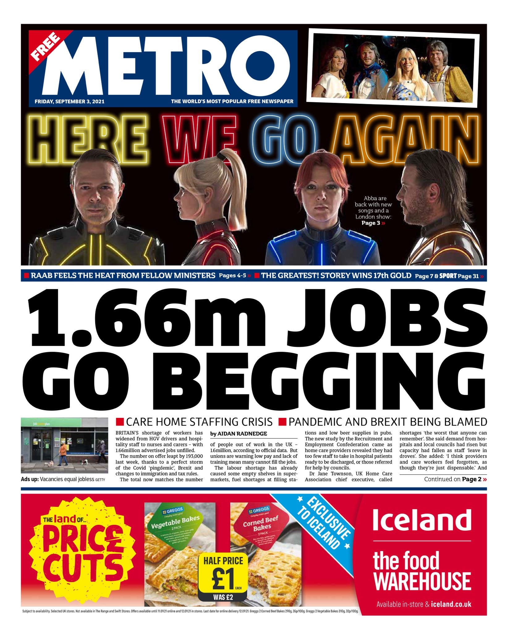 THE METRO - UK NEWSPAPER - 3rd September 2021 ABBA ARE BACK!
