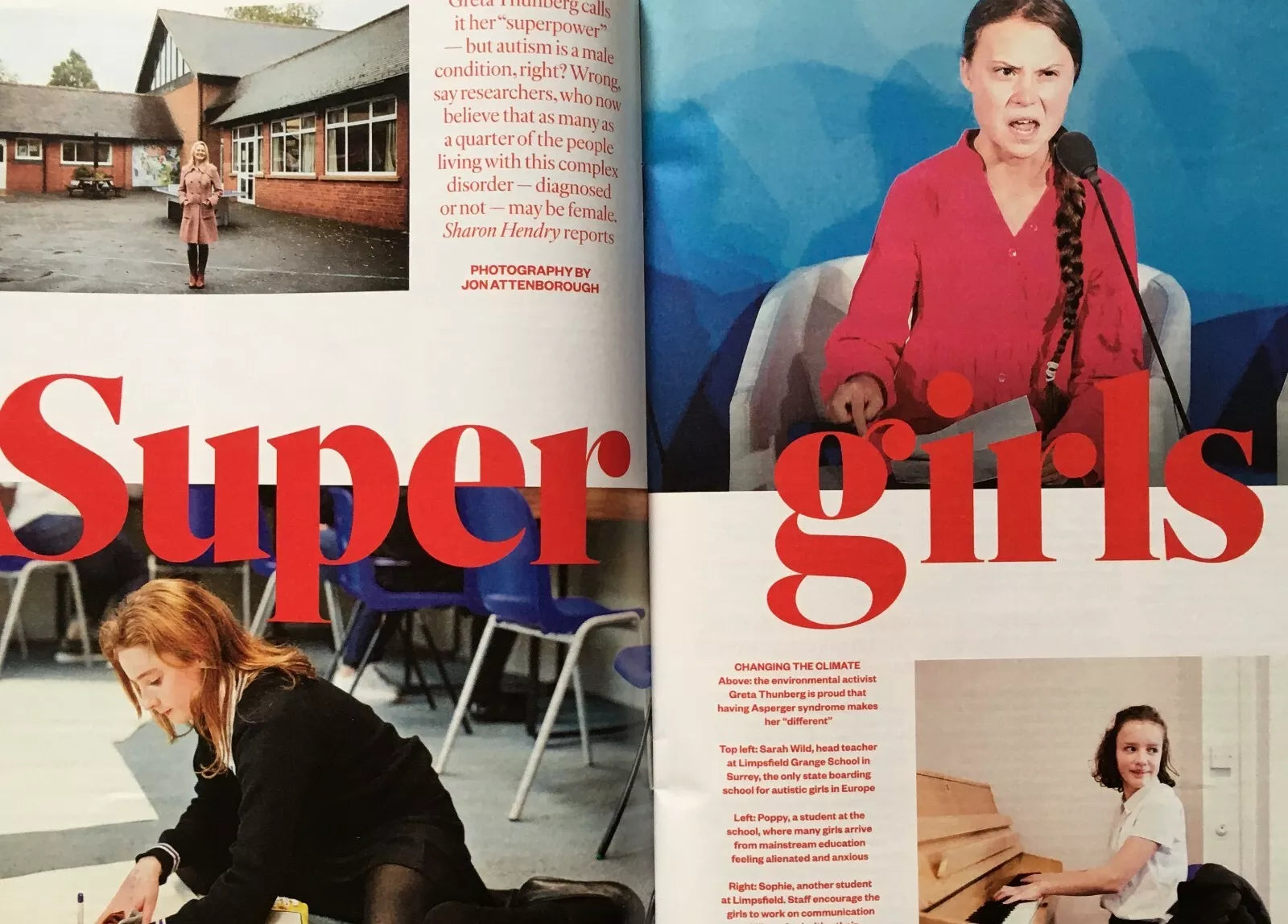 In depth report on autism focusing on Greta and others with photos.