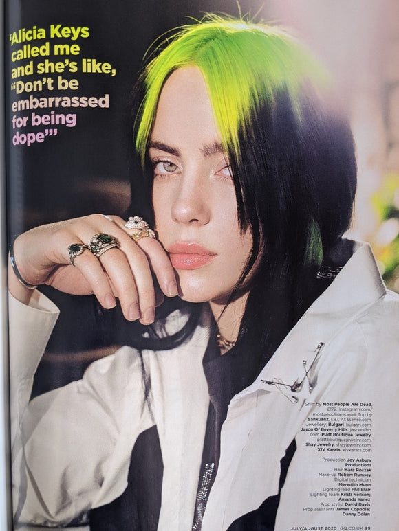 British GQ Magazine July 2020 - Very Good Condition Billie Eilish Confessions of a teenager superstar. Cover and large interview with stunning portraits. We Ship Worldwide