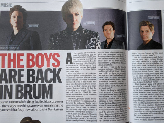 Cover and large interview with portraits on Simon Le Bon and more.