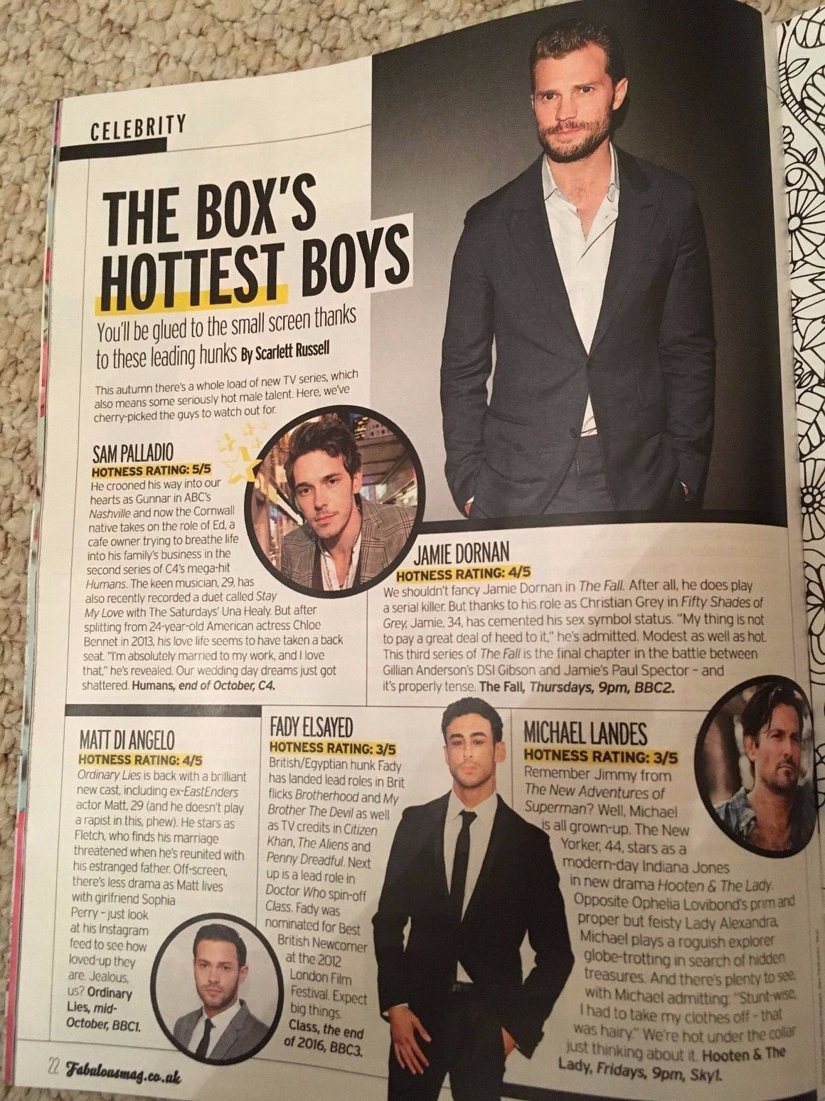 UK Fabulous Magazine October 2014 - Brand New Condition Jamie Dornan In depth article with stunning portraits inside.