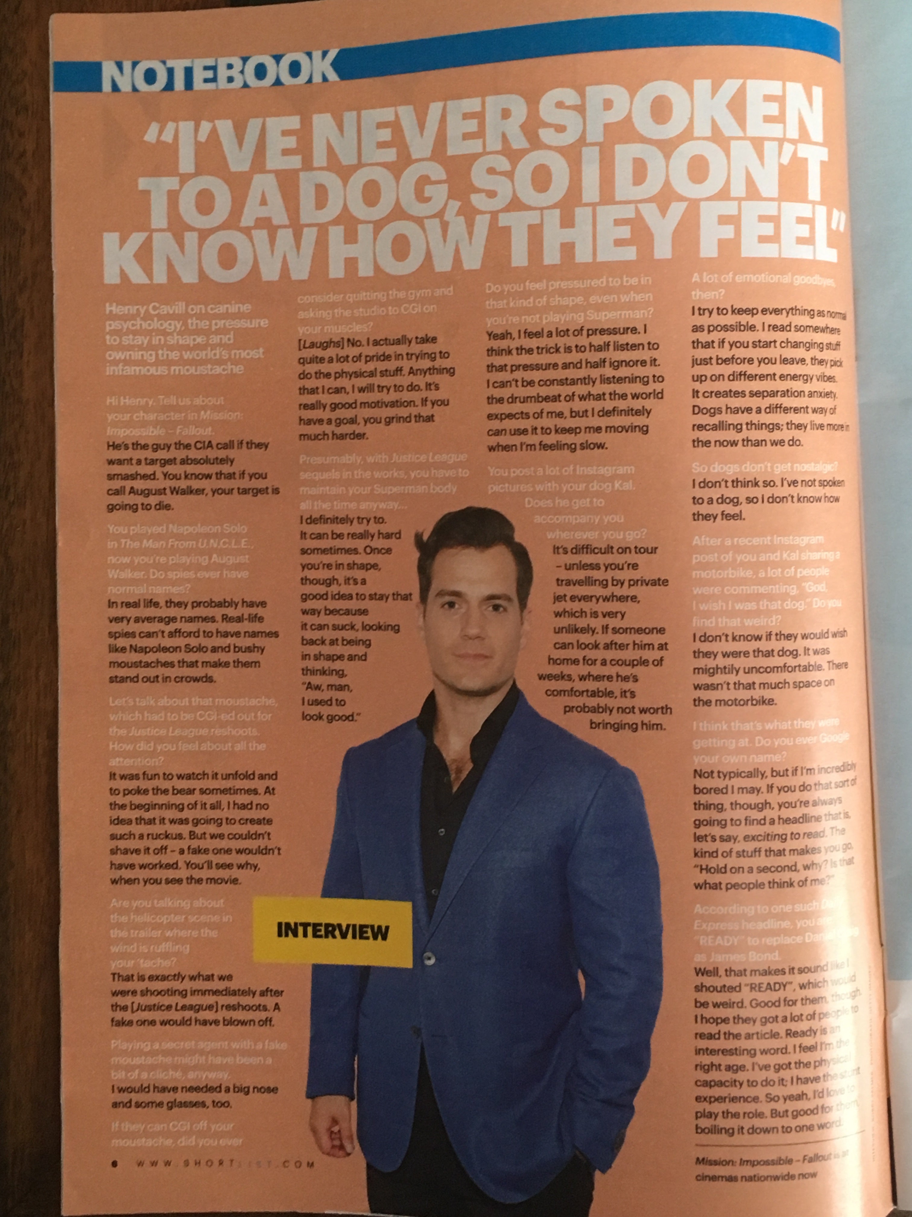 UK SHORTLIST magazine 26 July 2018: HENRY CAVILL (Superman) Interview