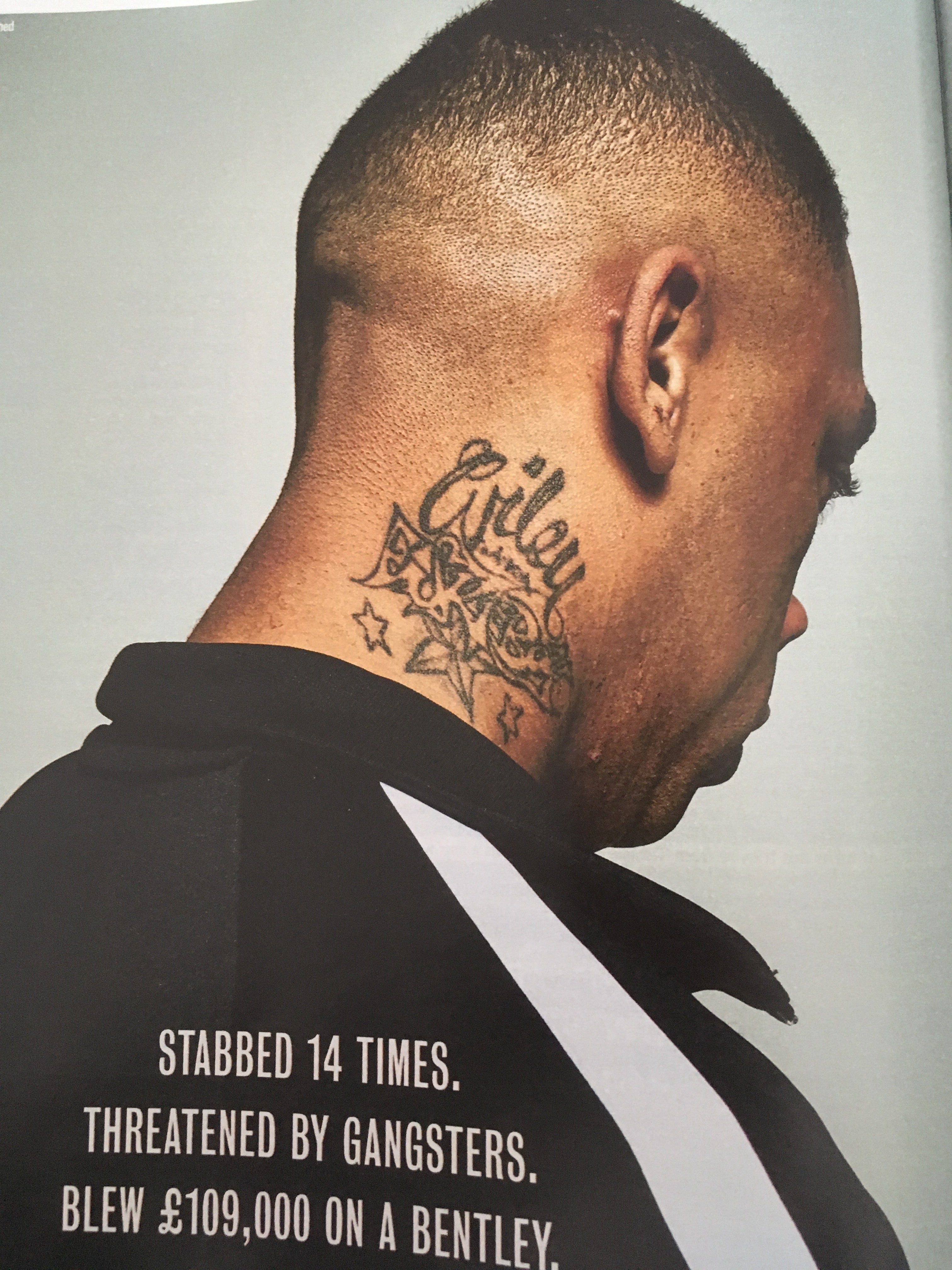 large interview with large portraits with the Grime star.